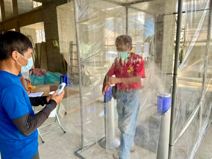 新冠疫情大爆發,迫使各行各業繃緊神經,中部知名建商「久樘開發」自創工地「消毒隧道」,進入工地都必須經過從頭到腳消毒程序,提供建築勞工安心的工作環境與健康保障,讓施工人員直呼:「好安心!」