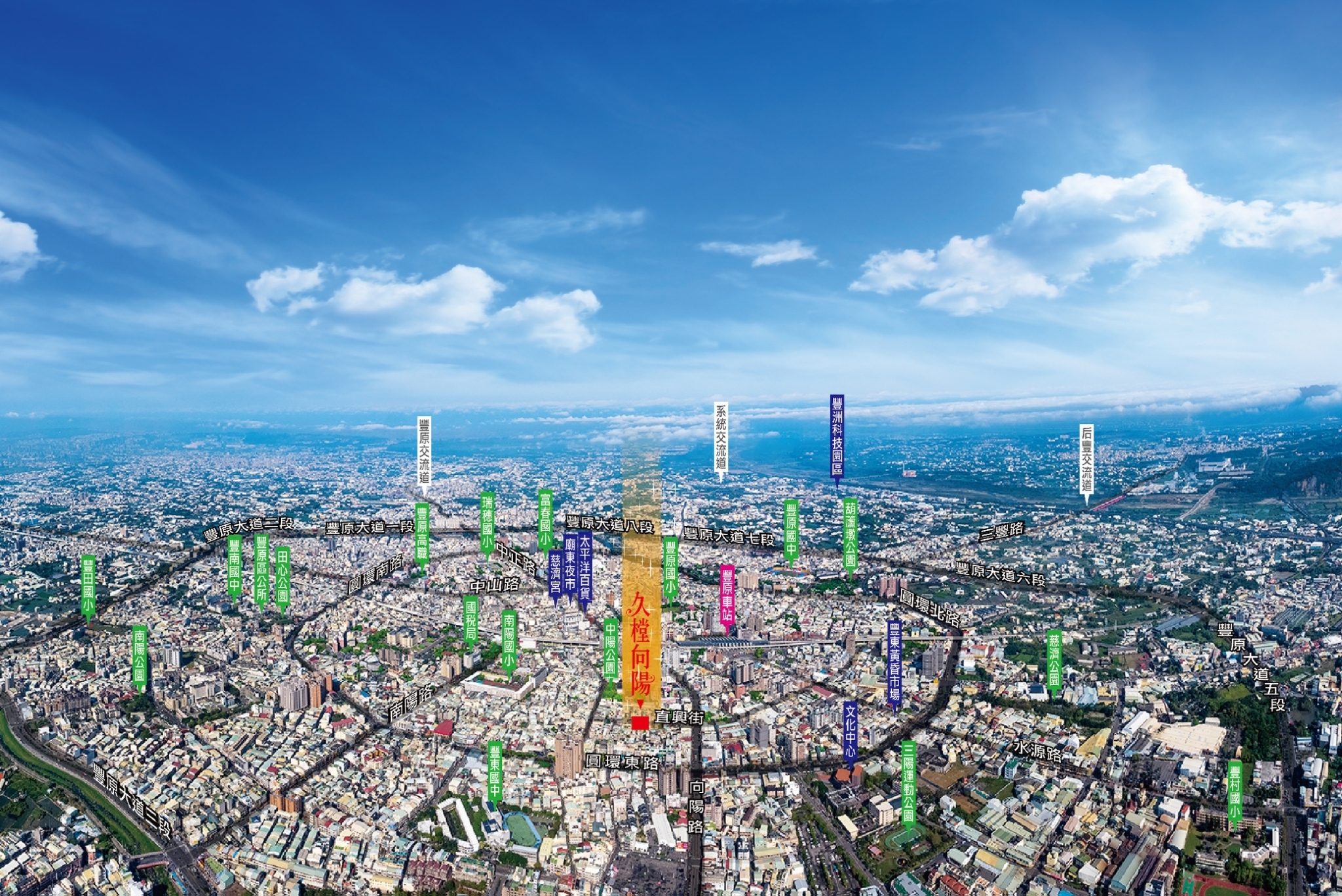 久違了!正豐原市中心!久樘開發以最精湛、擅長的靜音工法,打開豐原市中心的大門!眾所週知,向陽路承襲復興商圈繁華,台鐵捷運紅線的開通,火車站轉型的光環,向陽路全盤接收,而直興街在這繁華與寧靜之間無縫接軌,「久樘向陽」以豐原最核心的地段打開年輕家庭入主市中心的繁榮盛況!